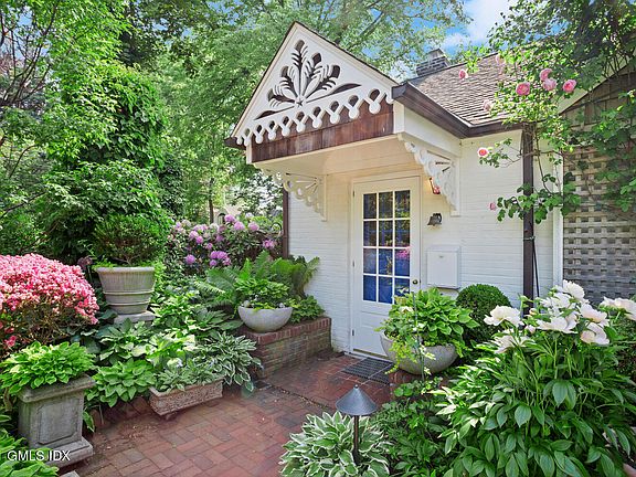 Enchantment abounds in this three bedroom ranch home surrounded by a lovely private yard with three terraces, and exceptional perennial gardens. These secret gardens are a true delight. A modern kitchen with granite counters and top of the line appliances along with Waterworks baths are among the recent updates. The family room off the kitchen can have multi-purposes with its gas fireplace, multiple builtins, wine fridge and Dutch door to a west facing brick terrace. The dining area is surrounded by custom bookshelves. The front and side yard terraces with fountains add to the ambiance of the outdoor seating areas. A dog run is included in this oversized lot. This is a sough after neighborhood with North Mianus Elementary and Eastern Middle Schools. The home is being sold ''as is''.