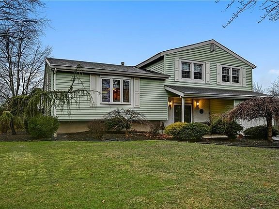 raised ranch with 3 bedrooms upstairs and 1 full bath and a 3/4 bath with shower in master bedroom. 1st floor remodeled with hardwood floors, new kitchen with granite counter and island. Gas fire place in living room ground level has family room 23 X12 with tile floors I car garage and finished basement. Central a/c and gas heat New washer and dryer