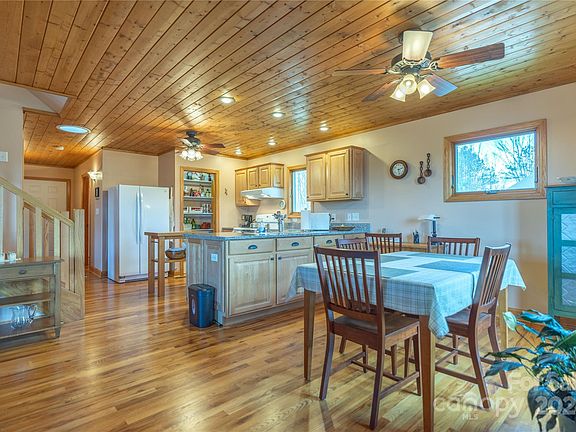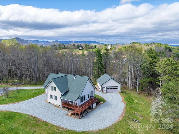 Homesteaders, mechanical minds, creators and hobbyists of all kinds lend me your eyes and take a look at this incredible private compound. Wide-open 7 acres encase a 2007 built two-bedroom, two-bath home with attached 560-SF, two-car garage and a 2010 built detached 780-SF, two-car garage/workshop. The main floor of the house features a primary bedroom with en suite bathroom and walk-in closet, a separate full hall bathroom/laundry room, and an open layout from the kitchen to dining area into the living room. Kitchen boasts a pantry, plenty of counter space and cabinet storage. Wood burning stove in living room warms the whole house with efficient, cozy ambiance. Upstairs offers a large bedroom/office with closet storage and long range views. Both garages have 220v power outlet for more heavy duty power tooling. Great southern exposure provides solar potential and excellent full sun gardening. 4 BR septic permit. Spectrum internet available. 16 min to grocery, 30 min to downtown AVL.