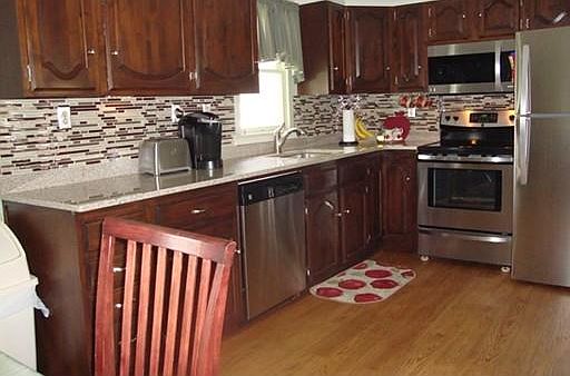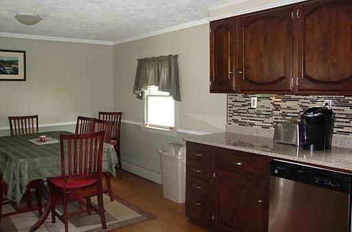 $10,000 PRICE REDUCTION REFLECTS ANY ISSUES ARISING AS A RESULT OF A HOME INSPECTION.. Terrific 1st time buyer or retiree home in great area near all major routes. Walkout basement to private patio and level lot with large storage shed. Newly updated kitchen w/stainless appliances, built in microwave, dishwasher, laminate floor,granite counters, tile backsplash, built-in micro, d.w., disposal, range and refrig. Boiler, hot water tank, vinyl siding, most windows, and trex porch/vinyl railings all updated since 2010, most newer. Home has freshly painted interior and hardwoods were redone Jan 2015. The full bath was recently done, with new skylight, tile floor, solid surface vanity countertop/sink and new tub surround and toilet. 1/2 lower level finished with tile floor.. . Washer and dryer and woodstove included in the sale. Home shows very well. Nothing to do, just move into this amazing home. It's all been done for you.