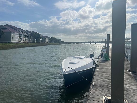 Interior 20' boat slip with 18' BOAT INLCUDED!! Electric and water hookup. First turn once you get through the gate. Private, gated community with restrooms and showers available to boat slip owners. Beautifully located at Mariners Cay with incredible sunsets and access to the Folly River.