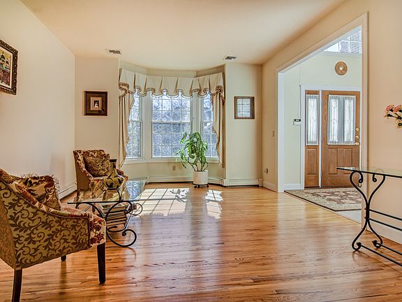 A 2-story entry foyer welcomes you to this stunning 4 bedroom colonial, built in 2002. The heart of the home is a beautiful kitchen with center island, stainless steel appliances, granite counters, and sliding glass doors leading to the private deck. A fabulous great room is open from the kitchen with a brick fireplace and hearth, framed by soaring ceilings. A formal living room, banquet sized dining room, powder room and a convenient mudroom/laundry complete the first level. The second floors offers an oversized master suite with a tray ceiling, a sumptuous bath, 2 walk in closets and a sitting room/home office. The upstairs hallway overlooks the elegant entry foyer and leads to 3 more spacious and sunny bedrooms and another full bath. The lower level has an enormous finished space with a rec room and a wall of beautiful built in cabinets. Come enjoy life in Montvale with top rated schools and easy commute to NYC by rail, bus or car.