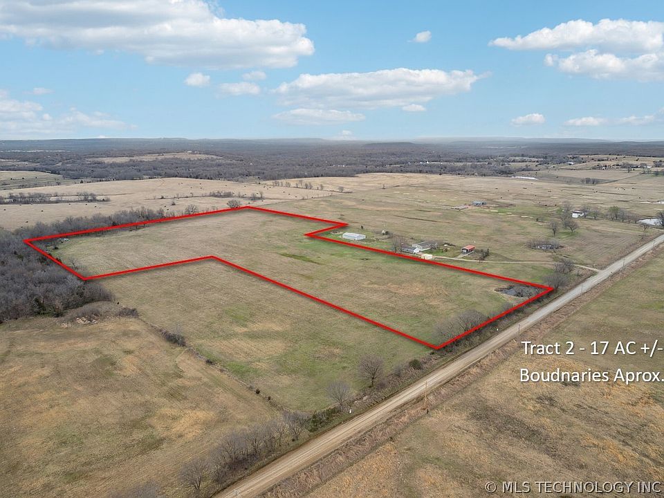 Embrace the opportunity to craft your dream home on this picturesque Tract-2 / 17+/- acre haven. Set just a quarter mile from a paved Dentonville Road, this plot boasts ideal build sites surrounded by verdant pastures, perfect for livestock enthusiasts. Enjoy the convenience of power and water connections at the road, while relishing the tranquility of rural living. With Okmulgee Lake just 4 miles away and Dripping Springs Lake a mere 5 miles, outdoor adventures beckon. Positioned 12 miles from Okmulgee and HWY 75, urban amenities are within easy reach. Don't miss this chance to create your own sanctuary and bring your family back to the outdoors. Buyers are responsible for all utility related expenses. Legal description to be determined by the survey. Additional Land available. See mapping in photos. MLS #'s Tract-1 2407301, Tract-3 2407498