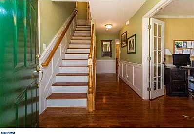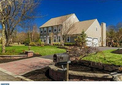 Stunning - inside and out! This beautiful home has been completely updated and is ready for you to enjoy your summer vacation at home. Large corner lot with carriage lantern lighting at the driveway entry leading to the 2 car side turned garage. Spectacular landscaping and hardscaping! Paver walkway leads to the front door entry with 6 panel storm door and side windows opening to the light and bright foyer. Gleaming hardwood floors and wainscot walls lead to all the living areas. Formal living room with wood flooring opens to the formal dining room with brass chandelier. The updated kitchen has wood cabinetry with nickel pulls granite countertops ceramic backsplash pantry closet stainless steel appliances 5 burner gas range and an island work area with storage. Breakfast room with wood flooring opens to the family room. Two story family room with wall to wall carpeting sky lights brick gas fireplace and sliding glass doors to the backyard. The main level also houses a powder room laundry room with stackable washer and dryer office. The main floor office has double French door entry with wood flooring and shuttered windows overlooking the front grounds. A turned wood staircase leads to the upper level. Master suite with hardwood flooring sitting room with view of family room walk in closet with a second door to access the attic storage space. Master bath with double wood vanity and ceramic double sinks with granite counter Kohler soaking tub and shower stall. The upper level also has 3 more bedrooms and another full bath. Now the Pi~~ce de r~~sistance - your backyard! Paver stone stairs lead down from the family room sliders to tiered seating areas. The first level is perfect to sitting and enjoying your morning cup of coffee. The second level is where you will enjoy an evening fire in the custom built stone fireplace. Don't worry if the sun is too bright just pull over the retractable awning and enjoy this area year round. A paver walkway leads to the backyard storage shed too. This home is only 14 years of age and also includes a one year home warranty for the new homeowner.