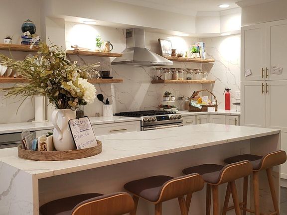 - Quartz Waterfall Kitchen Island