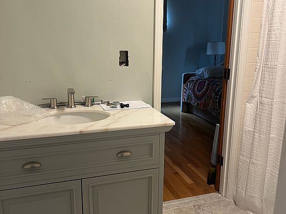 Private room with a newly renovated bathroom. The home is furnished with comfortable furniture. The bedroom has a king size bed, a new ceiling fan and blackout shades. An enclosed garage space is available for parking, along with some lock storage. The screened porch is the perfect spot after a long work day. If you like to exercise the neighborhood is perfect with sidewalks and wide streets. The 2 family rooms make it easier to have your own space to hang out in. Wood flooring throughout. Fees include rent, utilities and internet. Bedroom furniture can be removed if you have your own.