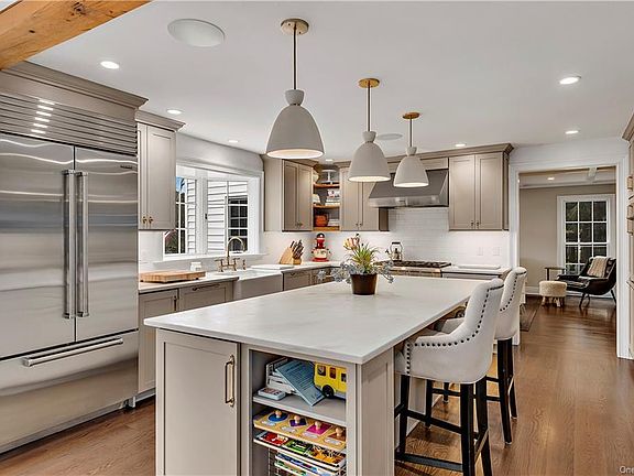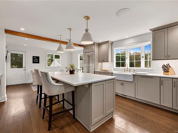 A FRESH TAKE ON THE PAST - Meticulous renovation of a 1900 Farmhouse. Wide Oak floors, crown moldings and a neutral palette. Sun-filled Living Room with coffered ceiling and gas fireplace. Beautiful Formal Dining Room. Stunning new Kitchen with Sub Zero, Thermador and Bosch appliances, marble counters and center island. Master With private Bath finished in timeless Carrera marble. Two additional Bedrooms plus Third Floor Guest Suite. New mechanicals including state-of-the-art gas heat, central air, Lutron lighting and a generator. Fronting on the Mianus River, over two level acres with incredible Magnolia and Apple trees. Perennial gardens surround the heated Pool. Pool House with Kitchenette, Guest Room and Bath. Moments to Bedford Village. Move in just in time for the holidays! An incredible offering!