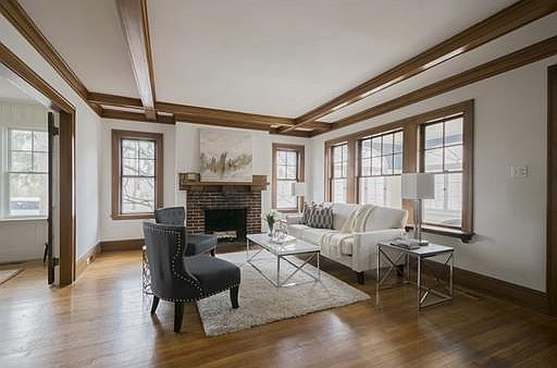 Welcome home to this immaculately maintained Colonial where modern style meets classic charm. Gleaming hardwood floors and lots of natural light flow throughout the home's interior. The spacious formal living room is beautiful with coffered ceilings, gumwood trim, a wood burning fireplace, and triple windows. The living room flows into the formal dining room through Mahogany French doors. The stunning kitchen is guaranteed to inspire your inner chef with granite counters, stylish white cabinetry, a center island with prep sink, gas cooktop, breakfast bar, Oak hardwood floors, a built in desk, bay window, and an informal dining area. The master bedroom is spacious with triple windows, a walk in closet, dressing room area, and gleaming hardwood floors. The full master bath is beautifully tiled with a dual sink vanity, shower stall, and Jacuzzi tub. More space awaits you on the lower level with a finished room perfect for use as a playroom or media room. Walk to Bridge ES and the Old Res.