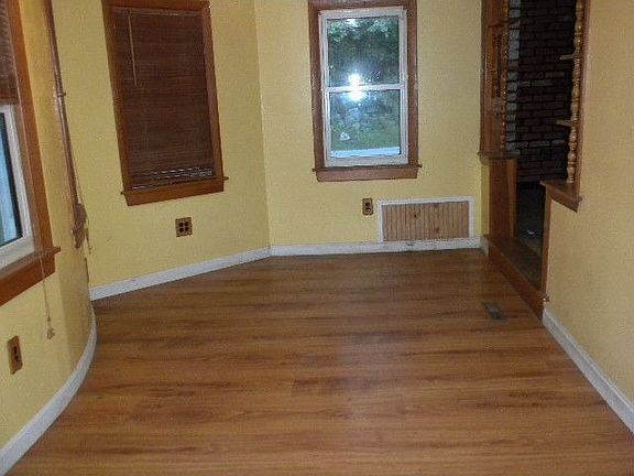 Three bedroom, 1 bathroom cape style house on a country setting with 1.41 acres. Property features detached two car garage with storage above, first floor laundry.
