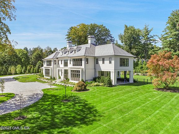 This Deer Park Association, Brick and Clapboard, Georgian Colonial has been meticulously crafted by local Hobi Award winning developer, continuing to raise the bar for the finest living in Greenwich CT. Designed for indoor-outdoor entertaining and secluded relaxation with seven bedroom suites, sprawling gathering spaces and spectacular covered poolside terraces, all nestled on 1.4 acres in prime Mid Country locale, within the coveted Deer Park association. Upon entry, the impressive two-story great room with fireplace and wine wall is second to none. The main level ushers you through a vast gourmet eat-in kitchen, family room, study and guest suite. 10'+ ceilings soar over select white oak floors and imported walls of windows. (see more) Above, an enviable owner's retreat with a terrace and spa bath is joined by four secondary suites, while the bright, flexible 3rd floor adds a playroom, bunk room and bedroom with bath. The finished walk-out lower level sets the stage for extraordinary entertainment with a two-lane Brunswick bowling alley, golf simulator, home theater, gym, spa, wine cellar, sauna, storage and staff quarters. Extensive smart home features Geothermal heating and cooling, elevator, generator and heated garage. AAA location, minutes to town. Nothing short of exceptional! Projected completion, October 2023.