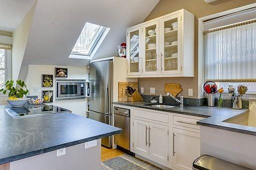 This picturesque 2 bedroom/1-1/2 bath corner exposure penthouse duplex is nestled in the tree-tops of the sought-after 8 Streets neighborhood. Enter your home just inside the building's front door and the entire townhouse from there on up belongs to you! Enjoy charming streetscape and expansive gated park views from each of the master bedroom's three large windows. Sunny 2nd bedroom is graciously proportioned and both bedrooms feature built-out California Closets. Sleek limestone and marble bath, with jacuzzi tub, completes this level. Wide open skylit top floor with vaulted ceilings is perfect for entertaining. Exquisite custom built-in serves as a wonderful focal point for this floor and is flanked symmetrically by both the living area and the open concept designer kitchen with its Italian soapstone counters and high end stainless appliances. Conveniently located half bath is also found on this level. New 3 zone ductless air conditioning system and hardwood floors throughout.