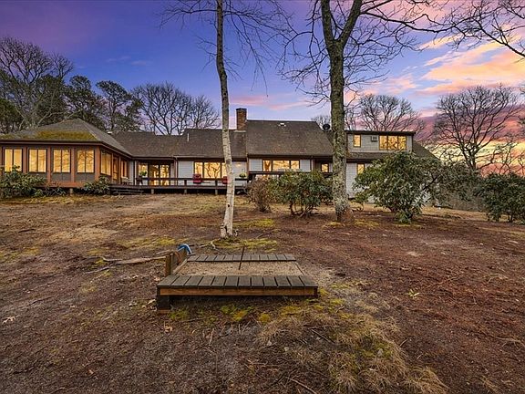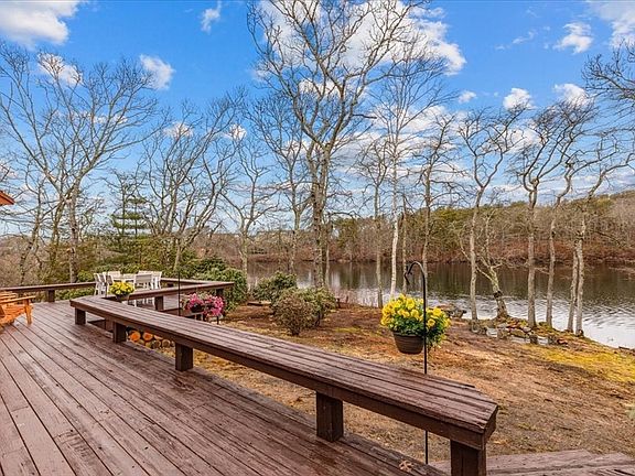 If you are looking for privacy and tranquility, look no further! Expansive Cape on Red Brook Pond with Panoramic Water Frontage! Enter the tiled Foyer to the Living Room with full water views. Into the Dining Room overlooking the water, a spacious updated Kitchen with professional grade appliances and indoor grill. Enter the breezeway leading to Garage, Deck & separate 3 seasons room. The first floor wing also includes 2 Bedroom ensuites with a private bath in each, a office with a full bath attached, a 1/2 Bath and Laundry room. The three seasons room off the deck offers a peaceful retreat to enjoy! Upstairs you will find an oversized secluded primary bedroom with full bath, walk in closet, and additional 15'X18' cedar closet. The walkout basement includes over 1,000 sqft of finished space, 2 ''Bonus'' rooms, Rec room and bath. There is an additional 2,200 sqft of unfinished basement. Walking distance to Chartroom and Kingman Yacht Club. New sod to be installed In front yard.