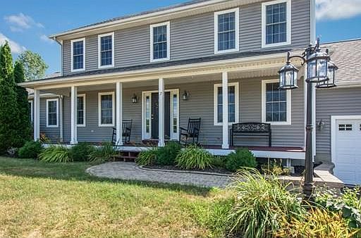 This home has it all...privacy, plenty of space for everyone, open floor plan & heated, built-in, salt water pool for entertaining!!! Too hot...move the party inside to the Central A/C! The main floor features a large, eat-in kitchen with granite counters, a center island with seating for 4 and sliders to the deck which overlooks the beautiful pool area. Additionally, there is a formal living room (currently being used as a spacious in-home office), a formal dining room and a huge, gorgeous Great Room with cathedral ceilings, recessed lighting and a fireplace w/ pellet stove insert! There is also a half bath and laundry area. Head upstairs to an inviting sitting area and 3 very good sized bedrooms. The master bedroom has its own private bath with double sinks, walk-in closet and single closet. The common bath also has double sinks. If you need even more room, head downstairs to the very large finished basement! You are going to fall in love with the yard, the location and the privacy!