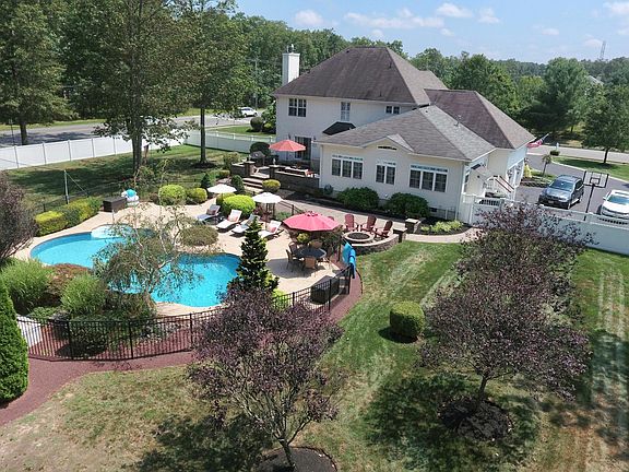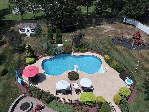 Pride in ownership is evident in this beautiful four bedroom center hall colonial. Primary features include crown molding, plantation shutters, and a Chef's kitchen complete Viking appliances. All bedroom closets have been outfitted with California closets and hardwood floors. The full finished basement features a kitchenette for entertaining, a fireplace, and a large home gym. Step outside to a fully fenced backyard complete with an in-ground pool, deck, hard lined gas fire pit, and gas hook-up for your grill. With an acre of land, there is still plenty of lawn to enjoy. Other features include a multi-zone well water sprinkler system, built-in surround sound system, 3 fireplaces, 3 zone HVAC and a security system. This home is sure to impress, schedule a showing TODAY!