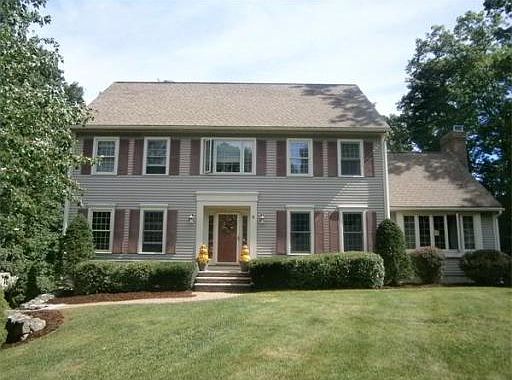 Stunning Colonial in private cul-de-sac backing up to woods. This home has a wonderful floor plan with open eat-in kitchen/family room setup. Family room has cathedral ceiling, fireplace, wood floors, and lots of light. Kitchen has tile floor, loads of cabinets, built-in desk, wine rack, is fully applianced eat-in w/bumpout; formal dining room with tray ceiling, wood floors and wood panels. First floor also has office, den and 1/2 bath. 4 bedrooms upstairs, 2 w/new wood floors Partially finished basement, C/A, C/V, 2 car garage, fenced in area w/inground swimming pool and nice area for volleyball. New septic and loads more. So much house!