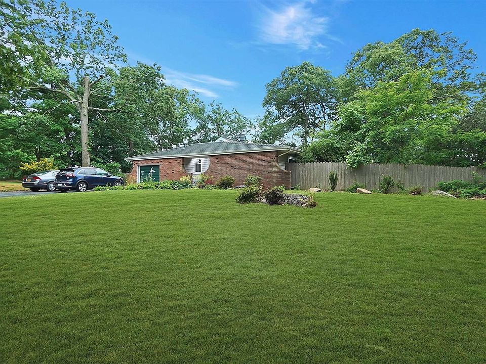This large California Ranch has Living Room with Fireplace, Dining Room, large Eat in Kitchen renovated to the studs, Den (or 5th Bdrm), Master Bedroom w/ MBA, Hall Bathroom, 3 Bedrooms, Craft/toy Room, Sunroom. New roof 2010, 2016 new siding and gutters, 2018/2019 new A/C heating units, 2019 all new entry way, 2020 new septic, 2017 new kitchen appliances, 2021 new washer dryer. Sliders from the Dining Room open onto the deck ready for you to BBQ this summer. The sun room is perfect for reading a book and sipping a beverage all year long. The yard is private and waiting for you. Welcome home!!