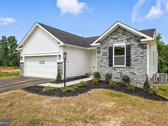 TO-BE-BUILT Lily Ranch in Huntwell West. Charming single-story home designed for comfortable, everyday living. 3 bedrooms, 2 bathrooms, and a 2-car garage — all conveniently located on one level. The open-concept layout creates a warm, inviting space ideal for gatherings and daily life. The kitchen features modern finishes, including stainless steel appliances and LVP flooring, with included kitchen island for additional storage and casual dining. The private primary suite serves as a relaxing retreat with a spa-inspired bathroom and a spacious walk-in closet. Limited-time incentive: a finished basement rec room is included! Optional upgrades allow for a full basement bathroom and rear exit to the backyard, offering even more flexibility and living space. 📍 Huntwell West is just 8 minutes from Charles Town, easy access to Route 9 and I-81, and close to the Shenandoah River. 📸 Photos show a similar home and may feature options not included in the base price. 🏡 Model home: 11 Peters Ave, Ranson, WV