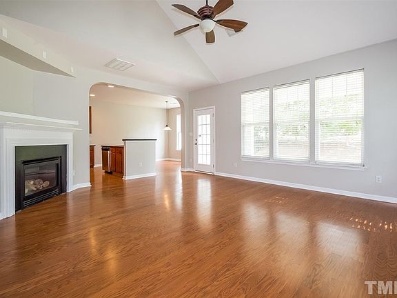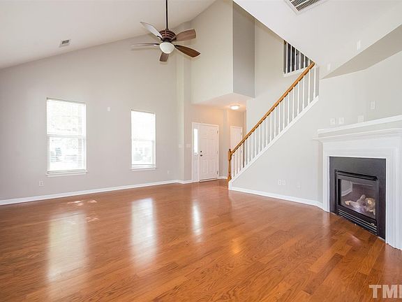 Beautiful corner home with sizeable front, side and back lawns in a friendly, clean, conveniently located neighborhood. Gorgeous exterior stone facades. Well-appointed kitchen with granite countertops, all-stainless appliances and hard wood floors. Family room prewired with installed Bose 5.1 surround sound and large flat screen television nook. Gas fireplace. Security system. Ground level fully hardwood floors. Ample storage with walk-in closets in master suite and side bedroom. Attached two-car garage. Additional external storage room. Covered patio for outdoor entertainment. Located easy walking distance to upscale dining and shopping at Southpoint Mall. Minutes from RTP, I-40, and RDU airport, as well as an easy drive to beautiful Jordan Lake. Just 20 minutes to UNC or Duke.