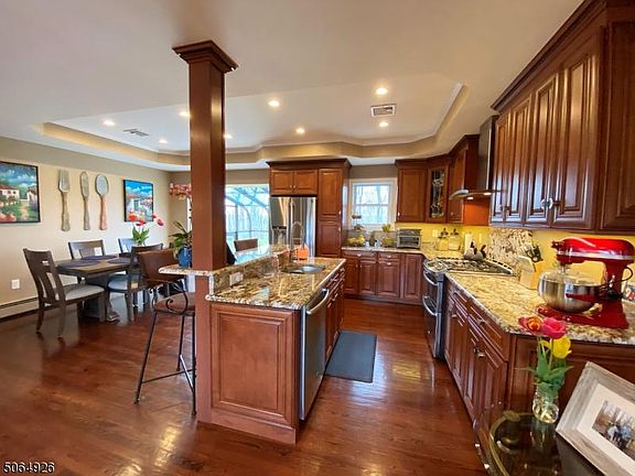 Pool is Open! This 4 bedroom home is Immaculate. Main floor with open concept: gorgeous kitchen w/center island, breakfast bar, tray ceilings, hdwd floors, recessed lights, sunroom off dining room, Master bedroom has walk-in closet access door to main bath. Ground level family room with wood burning stove and newer tiling, 4th bedroom, half bath, laundry room/utility room, entrance to 2-car garage. Resort-like living with gorgeous mountain views, 2 yr young -salt water pool and Koi pond, central vacuum, generator hook up, central A/C 1 yr old, new gutters, newer furnace, shed, plenty of parking.