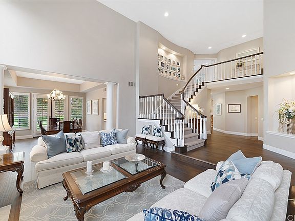 Completely Remodeled Coto home on a huge private cul-de-sac lot with large grassy area and an oversized spa with waterfall! Offers 4 bedrooms + Den + Bonus & 4 Bathrooms! Soaring ceilings in the formal living room allow for plenty of natural light. Beautiful wood floors! Remodeled Chef's Gourmet Kitchen with quartzite countertops, center island, double ovens and walk-in pantry opens to family room with brick fireplace and built-in entertainment center. Off the family room is a wet bar with counter seating and butler's pantry, perfect for entertaining guests. Downstairs includes a bedroom with en suite bath, individual laundry room, and a den/office with adjacent bathroom and option to be a 5th bedroom. Massive Master Suite boasts a retreat and two walk in closets. 2 secondary bedrooms and a bonus room complete the upper level. Large backyard features plenty of patio space, a grassy area and an in-ground spa. Plantation shutters, marble, new carpet, paint and just about every square inch has been remodeled! 3 car garage plus extra long driveway with parking for 5 cars. Walk to Golf and Racquet club with fitness center, pool, tennis and dining. Plus a very Low Tax Rate!