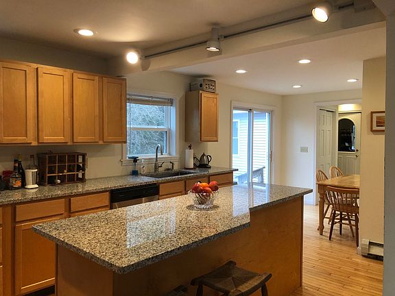 This conveniently located in-town Hanover home is close to everything yet sits on a quiet dead end street just a short walk from Main Street. The layout boasts a lovely open concept kitchen-living-dining room flanked by a woodstove with hearth and sliders to a deck. The natural maple kitchen cabinets are complimented by granite counters and stainless steel appliances. The first floor master suite has vaulted ceilings and a fireplace, along with a spacious master bath and walk-in closet. A mudroom connects the oversized 2 car garage to the breakfast room that has more sliders to the back yard. There is another bathroom on the first floor and extra laundry hookups for future use. Upstairs there are 3 more bedrooms, a third bathroom, plus a bonus room for storage or a playroom/office. There are hardwood and tile floors throughout this home, as well as new windows, trim and siding. It's all ready for you to move right in!