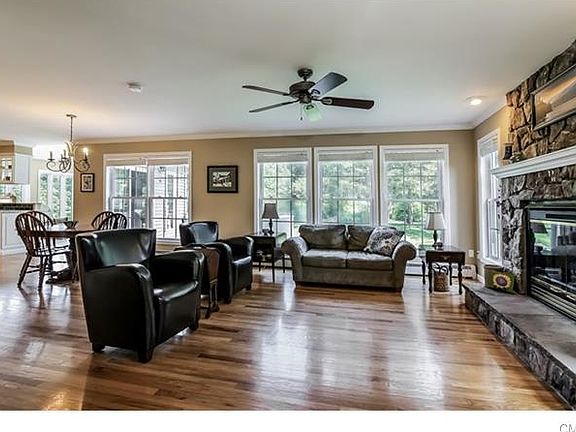 Southern New Milford. Level 1.34 acre property backing up to 13 acres of open space. Updated 4 bedroom Colonial Farmhouse in cul-de-sac. Kitchen has Corian and Granite (installed 2016) counter tops. Propane cook-top on island. Bright sun-room leading to deck and backyard. Large family room with gas fireplace and french doors leading to living room. Master bedroom has vaulted ceiling and hardwood floors. Master Bath has double sinks, Jacuzzi tub, separate shower, and walk in closet. Laundry room located off kitchen includes washer and dryer. Partially finished basement with lots of storage space. Oversized 3 car garage has a walk-up loft just waiting to be finished! Hardwood floors throughout house. Perfect commuter location.