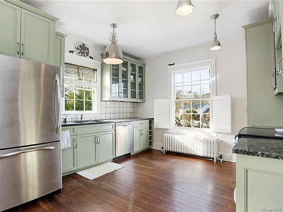 This vintage home is not your typical colonial with its open floor plan and modern sense of style and flair!!!There are high ceilings throughout as well as architectural details, hardwood flooring and 3 levels of living space. It has the feel of a New York Brownstone with reasonable taxes.. The front entry has an impressive raised panel stairway and spacious coat closet which leads to a front to back living room. Generous in size with a decorative mantel and wood burning fireplace.The screened porch is perfect for dining or just relaxing. The updated kitchen with stainless steel appliances opens to a dining area and a pantry which provides storage but also a mudroom or a quaint home office.There is also a side entry as you enter through the stone pillars and is convenient to the 2 car garage-the preferred entrance of the owners. The second floor includes the Master Bedroom with walk-in closet and full bath with separate sinks and claw foot tub.The other 2 bedrooms are spacious in size and share the updated hall bath. The third floor has a cozy nook perfect for reading or enjoying the water view from the window. The additional 2 bedrooms are currently used as home offices and access to additional storage. This Cranbury location offers convenience to shopping, train, beach and highways and less than a mile to Westport. Immediate occupancy available for the discerning buyers who like charm and modern in one special home!