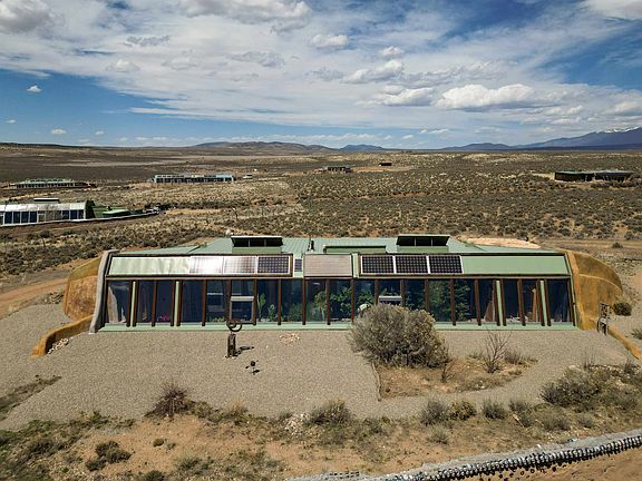 Exceptional Home in the Greater World Community. This Home is the GLOBAL MODEL, which is Mike Reynolds Most Deluxe. Mike used photo's of this home for his advertisement. It's Luxurious with Upscale furnishings, Tile Floors, Beautiful Finishes, High End Appliances, all in a Beautiful, Spacious floor plan. The Bathroom is elegant and large. New charge controller, inverter, and batteries for solar system were installed in 2020. Large 3000+ Gallon Water Cistern Catchment System. Some of the Best Rocky Mountain Views in New Mexico! GREAT Location just 20 Minutes from down town, 30 Minutes to Taos Ski Valley, 6 Minutes to the Rio Grand Gorge Bridge and Close to Many Hiking Options. Location, Location, Location! Live Well and be kind to the environment! Off the Grid Living at it's best! THIS PROPERTY IS ALSO A GREAT INVESTMENT. In 2022, it rented for 303 days and grossed $45,775. 2023-07-31
