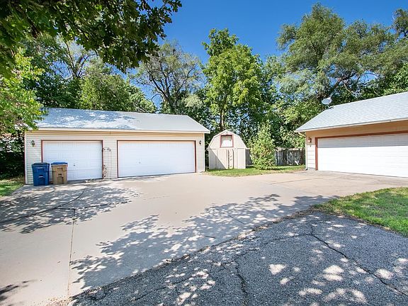 Over one acre lot with 5 car garages. A special custom home with vaulted ceiling, fireplace, sunroom, skylights, and finished basement. It needs a little love, but new siding, paint and carpet would add a lot of equity. Truly a diamond in the rough for someone looking for some elbow room and lots of garage space. Notice both lots included --look at DOCs for drawing.