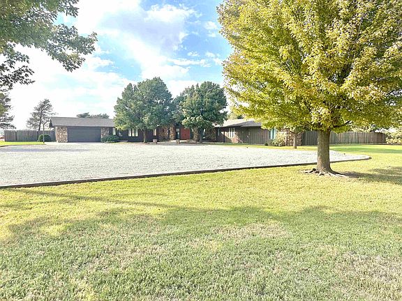 Spacious living meets countryside charm in this 3,792 sq. ft. home with 3 beds, 3 baths, on 2 acres! Located just on the edge of town, this well-maintained home will meet all your needs with its grand entrance, striking stone accents, and spacious living areas. Inside the double-door entrance, is a free-standing, stone fireplace that is the centerpiece of the huge living room. The west-facing windows flood the space with natural light, and sliding doors lead to the back patio. Adjacent to the living room is a formal dining room that flows seamlessly into a chef’s kitchen complete with a large center island, abundant cabinetry, pantry cupboards, and a large space for additional dining. Convenience is key with a full bath and laundry room that features a wash sink, several closets, and additional refrigerator or freezer space located right off of the garage. On the other side of the living room is a large office space with built-in shelving offering a quiet retreat for work or study. Continue down the hall to two bedrooms with large closets and a full bath that features double sinks, walk-in shower, and more storage.  The master suite is a true sanctuary, featuring double closets and an entrance to the backyard. The luxurious master bathroom features 2 additional walk-in closets, double sinks and a large walk-in shower. Back at the front entrance the center stone wall continues down into the basement for another fireplace in a large family room that features 2 egress windows for daylight and a wet bar.  Also in the basement is a large utility room with more storage! Outside, the home has an attached garage, an enormous wood-fenced backyard, rocked front driveway, and mature trees. With five doors leading to the backyard and two patios, the outdoor space is perfect for both relaxation and entertaining. This home has been meticulously maintained with too many details to list, including a new roof. Harper, KS is located an easy 50 minute drive to southwest Wichita, the perfect blend of rural and accessibility.