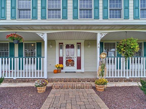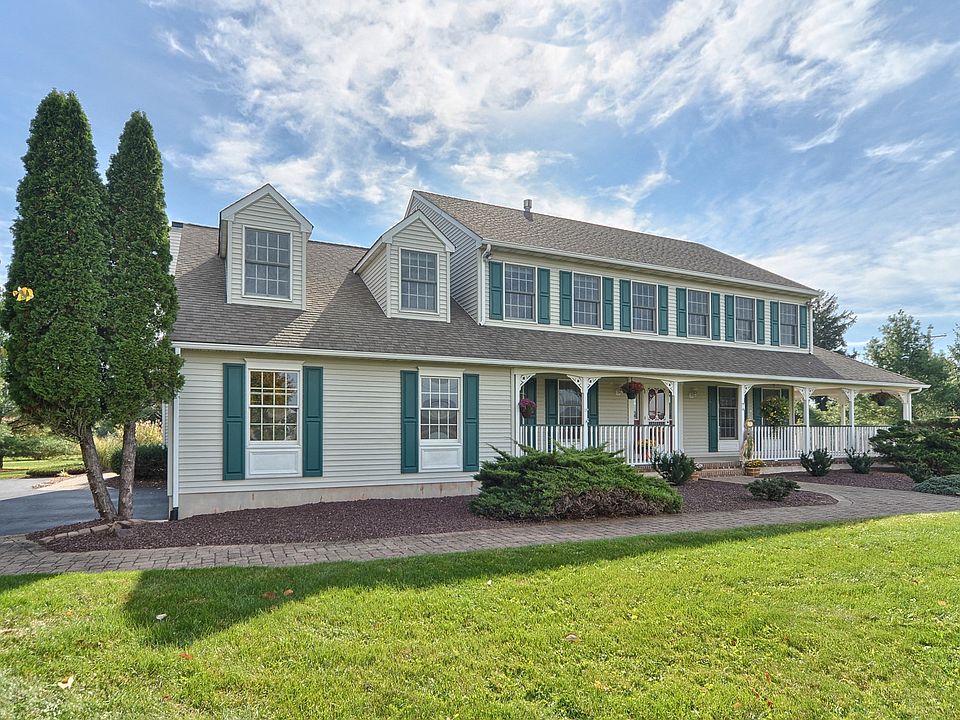 Pride of ownership is apparent in this immaculate colonial on a 1.4 acre beautifully landscaped lot.  Perfect for entertaining indoors and out from its inviting covered wrap around porch to a rear paver patio.  Details include chair rail, cove and dentil moldings, and six panel wood doors throughout.  A Kitchen with center island and granite counter tops opens to a sunny Family Room with vaulted ceiling, skylights, and fireplace, and both rooms have sliders opening to the patio.  The Master Bedroom features a tray ceiling and adjoins a spacious bonus Sitting Room with lots of light, and a Master Bath with whirlpool and separate stall shower plus vaulted ceiling and skylights.  Three additional Bedrooms, a Bath, and four linen closets complete the second floor.  A two car attached garage, full basement, central vacuum and ample storage complete this fine home.