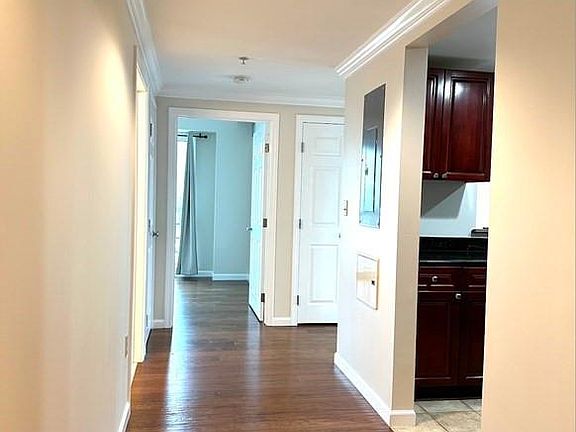 Spectacular 2 bedroom/2 bathroom home with breathtaking natural light! This corner unit with floor to ceiling windows has it all. Soaring ceiling height. Hardwood flooring throughout. Galley kitchen with tile flooring, granite countertops, and sleek black appliances. Washer/dryer in-unit. Central air. Double-door spacious closets both in the primary and second bedroom. Two full bathrooms with vanities providing lots of storage space as well as a tub shower in the primary bathroom and fabulous walk-in shower in the second bathroom. One indoor valet parking space included. This home just underwent a few updates including: a fresh coat of paint throughout, bathroom cabinets were stripped and painted, newly installed smoke and carbon monoxide detectors, new engineered hardwood flooring in the living room and bedrooms, and new towel bars in the bathrooms. Located in an elegant condo building with 24/7 concierge, elevators, common courtyard and community lounge. Available Feb 1st! No pets.