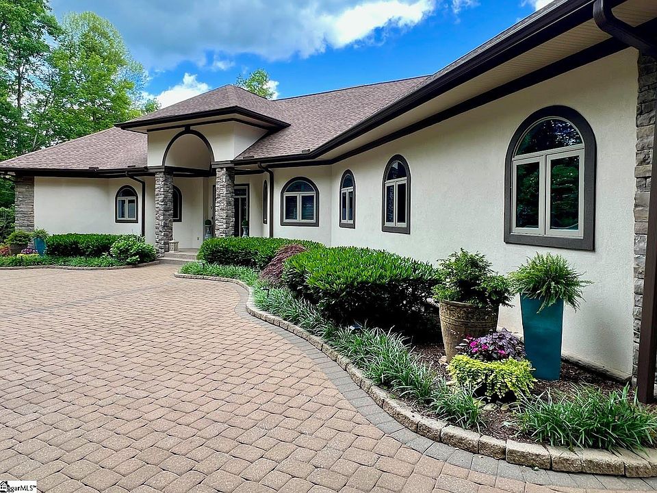 Perched at 2,600 ft. elevation, this mountain-top home enticingly situated above the 18th tee offers stunning views of the 10th, 16th, & 17th greens. Experience the ever-changing vistas, including long-range views of Hogback Mountain, set against the lush bent green fairways of South Carolina's highest elevation golf course. Enjoy the year-round natural beauty of Glassy Mountain. from any vantage point inside or outside the home. Watch the flicker and rise of the new dawn from the rear deck, revealing a stunning masterpiece each day. Located on a quiet cul-de-sac, this home is hidden among lush landscaping and is within walking distance of the redesigned Glassy Clubhouse. The paver stone circular driveway cradles this artfully remodeled hideaway. A stepping-stone stairway and meandering pathway around the house add to the natural ambiance; while well-manicured landscaping, with seasonally blooming colors, leads you to a home of unique symmetry with nature. The combination mountain & golf course views are framed by floor to ceiling windows showcasing the season - vivid spring green of the fairways, bright summer hues of hydrangeas, the tapestry of fall color, and the natural grays of winter wrapped in shadows of mist. The main level great room features a 12 ft. barrel & tray ceiling with a delicate metallic pearl finish. The interior design combines traditional elements with modern influences, creating a relaxed feel. The fireplace, hearth, and wet bar are finished with custom dark gray textured plaster. French doors lead to the adjacent study, featuring built-in cabinetry and plantation shutters in an octagonal design. The dining room replicates the angled shape and offers a touch of formal ambiance with a dark metallic pearl finish tray ceiling and plantation shutters. A corner niche with soapstone serving counter hides a Thermador warming drawer for your favorite homemade bread. The powder room is adjacent to the primary bedroom, which is privately situated with an attached sunroom/sitting room. The ensuite features a large tray ceiling, custom California Closets, bathroom with heated floors, quartz countertops, Roman tub, and large walk-in shower. The completely remodeled chef’s kitchen & keeping room include granite countertops; a Kraus stainless farmhouse sink; Thermador double ovens, cooktop, & dishwasher; a 48 in. Sub-Zero refrigerator; Zephyr beverage refrigerator; and GE microwave. Custom Fieldstone cabinetry and vent hood, along with a large pantry with a custom sliding barn door encircling a large kitchen island, in contrasting knotty alder finish, providing seating space and a prep sink. Your guests will enjoy the aromas & company of the chef from the cozy keeping room with stone fireplace. The refreshed laundry room offers plenty of cabinet storage. Head downstairs to an expansive lower level with floor-to-ceiling windows and 12 ft. ceilings, allowing ample natural light to enjoy hobbies or hosting game night. Guests will enjoy large bedrooms ideal for extended stays and spacious enough for bunk beds, or a king bed and a crib. One bedroom is ensuite, while the other two share a large bath with a tub. The lower-level area includes a large unfinished utility room, ideal for a workshop, and a separate storage room for holiday decorations. Additionally, a seasonal wardrobe closet is well-designed for overflow active attire. The third bedroom can also serve as a flex space, exercise room, billiards room, or home theater. This room has French doors for outside access & a large storage closet. All rooms at the rear of the home provide direct access to the deck, fieldstone patio, or private yard. A whole house generator with 3 years of remaining extended warranty is included with this property. The two-car garage features a refrigerator outlet with an icemaker waterline hook-up and a utility tub sink. A Cliffs Club membership is available for purchase with this property.