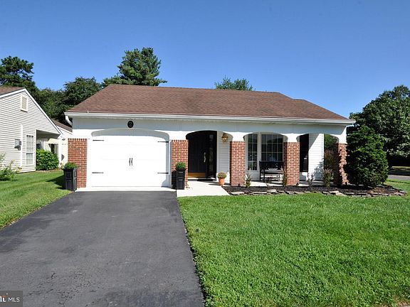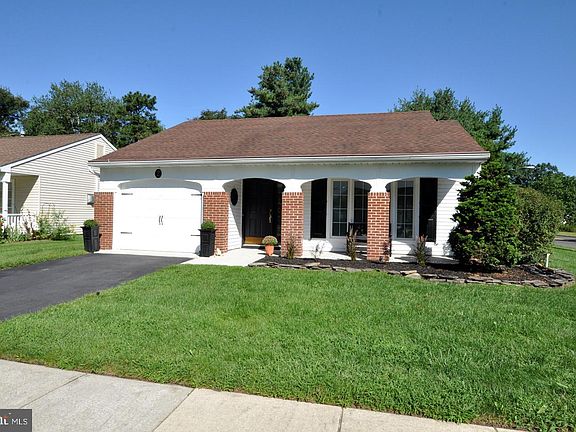This beautifully maintained home in the Leisuretowne active adult community is a perfect choice for those seeking a comfortable and elegant living experience. Featuring two bedrooms and two bathrooms, the property includes a garage with direct access to the house for added convenience. Inside, you'll find a large living room ideal for relaxation and entertainment, along with a formal dining room perfect for hosting meals and gatherings. The open kitchen boasts a separate breakfast area, making it suitable for casual dining, and there is also a spacious den that provides additional space for leisure or hobbies. The large sunroom offers views of lush woods, allowing residents to enjoy nature from the comfort of their home. The home is situated on a large corner lot with a private backyard. The primary suite is elegantly designed, featuring an ensuite bathroom with a step-in shower, an updated dressing area with a new vanity and modern fixtures, and a spacious walk-in closet for ample storage. The inviting front portico leads to a formal entry, enhancing the welcoming atmosphere of this property. Central vac for your convenience. Overall, this home combines comfort, elegance, and modern amenities, making it an ideal choice for seniors looking for serene living.