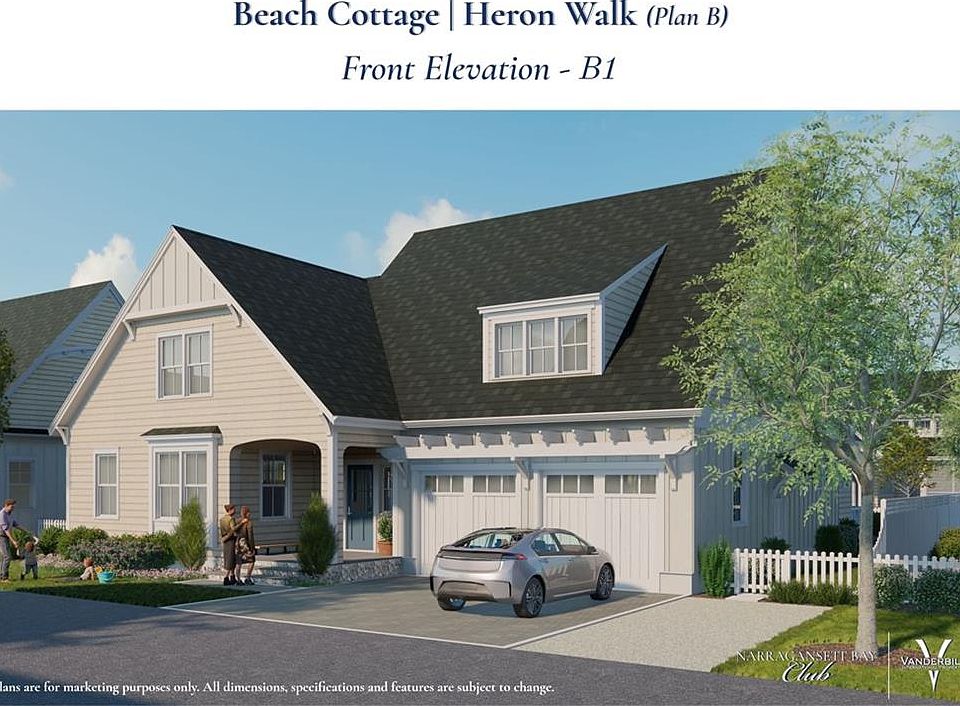 NEW CONSTRUCTION - Stunning new semi-custom "Heron Walk Plan B" Custom Home with over 3,000 square feet of living space, plus bonus storage area over the integral two-car garage. The four-bedroom, plus den home includes and upstairs and downstairs master bedrooms, plus two guest rooms, and open floor plan and optional elevator. These seaside single family cottages allow the buyer the opportunity to customize finishes and are a great condo alternative. Narragansett Bay Club is located near The Aquidneck Club and a short drive to Newport, Bristol and only one hour from Boston with easy access to Route 24. This gated community includes a host of amenities, including a beach front pool pavilion with an Olympic sized heated swimming pool, recreation pool, kids pool and hot tub. The tennis center includes four Har-Tru lighted tennis courts and two lighted court tennis courts and "Warming Hut" with facilities. There is an equestrian center with indoor and outdoor riding rings and waterfront fitness. There is also a limited number of moorings accessed by the community's private dinghy dock and/or boat ramp. Membership for all owners is required at ($10,000) and a $2,000 capital reserve fee is due at closing. Call today to receive specifications and to arrange to see the property amenities.