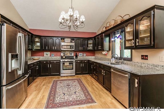- - Move in ready. 10 minutes to downtown Asheville this immaculate home is especially private with winter views and lovely wrap around deck. Newer heat pump with gas backup, new granite counters, gas fireplace. Large basement is ready for workshop, art studio, home theater, great possibilities. Extra drive allows for easy entry and 1 level living. Side lot is very private and ready for playground, vegetable garden, apple orchard, you name it!