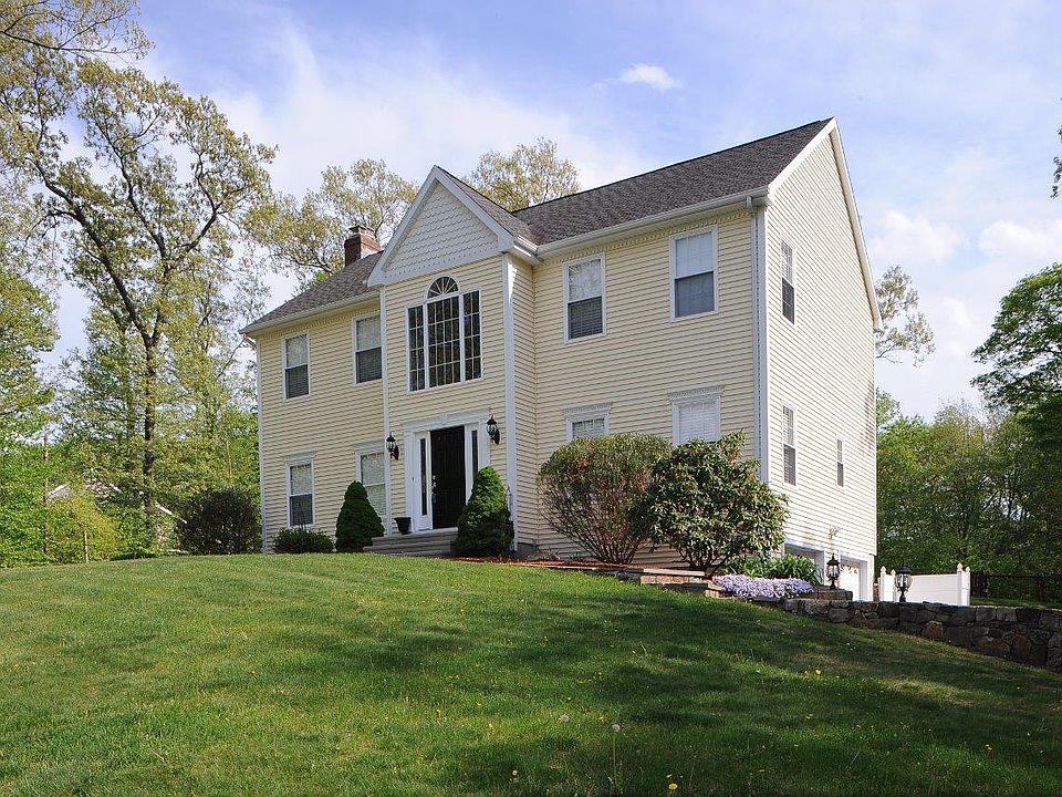 Beautiful cul de sac! Traditional Colonial peacefully situated on 1.54 acre! Open two story foyer with wainscoting, HW Flrs. LR w/HW flrs, crown molding, fireplace. Formal DR w/crown molding opens to smashing white kitchen with center island, cooktop, double ovens, and eating area! Master w/HW flrs, vaulted ceiling, walk-in closet and full bath w/dble sink vanity! BRs w/HW flrs, second floor office, second flr laundry! Expansive level yard surrounded by woods for privacy!