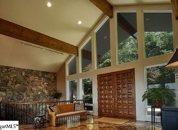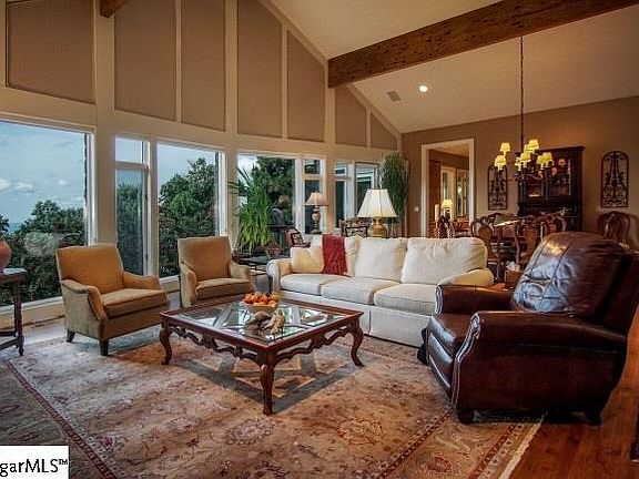 Reduced by $149,500! This gorgeous, spacious home is nestled on the hill side of Glassy Mountain. Relax in the welcoming great room or lovely sunroom to enjoy the mountainside colors in the Fall and the new growth come to life in the Spring. This serene, quiet setting is close to lifestyle amenities Glassy Mountain offers: wellness center, pool, tennis courts, spa, fitness trail, postal station and the East Gate. Even the lower level patio and outdoor kitchen provide beautiful mountain and valley views. When entering this home, you are struck by the magnificent great room with a bank of windows to let in natural light, stone fireplace, built-ins and magnificent view. The marble entry and wood floors are exquisite! The open floor plan on both levels of this lovely home allows the owner to be creative and make the house their own. The suspended, spiral staircase with an accent stone wall provides an impressive backdrop. This impeccably maintained home has an enormous master bedroom and sitting area which offers a comfortable, resting space to admire the beauty of the valley and the Blue Ridge escarpment. The over-sized walk-in closet and stained glass in the master bath area are stunning. Quality Wood Mode cabinetry adorns the breakfast room and kitchen. Corian counter tops and top of the line appliances complete the kitchen. There are 3 bedrooms and a beautifully appointed study. Three large storage areas of more than 400 sq ft and a large cedar closet give ample space to store and safeguard your personal items. This home even has an over-sized 3 car garage with more storage space, room for a workshop and 2 hook-ups for large appliances. A Cliffs Club membership is available for purchase so there's an opportunity to enjoy all Cliffs communities' amenities: golf, tennis, hiking trails, equestrian center, boating and a beach activity center. Glassy Mountain has been voted the friendliest Cliffs community and offers a wide range of activities. Come and visit this very active community!