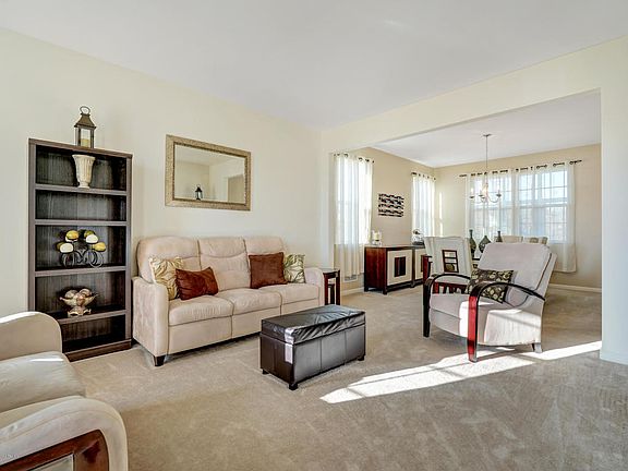 WELCOME to the Cul-De-Sac!*This NOBLE III Model w/ FULL FRONT PORCH and Accent Stone Water Table sitting on a PREMIUM .62 Acre DEEP LOT offers a BONUS 3 SEASON ROOM off Kitchen!*Two Story Entry Foyer w/ Hdwd Flooring*Library*Formal Living and Dining Room*Expansive Kitchen w/ 42''Soft Close Cabinetry*SS Appliance Pkg w/ Gourmet Deep Undermount Stove*Pantry*Extended Peninsula Style Counter Top for Buffet Style Entertaining*Hdwd Flooring in Kitchen*Sunny Breakfast Area w/ Access to Sunroom!*Family Room w/ Gas FP & Recessed Lighting*MBR Suite w/ Tray Ceiling*Hunter Fan*WIC*Private Bath w/ Dual Sinks & Soaking Tub*3 Additional Spacious Bedrooms*Upgraded W/W Carpeting*Full Insulated Bsmnt w/High Ceiling*Rough Plumbed for Bath!*Whole House Surge Protection*Transferrable Builders Warranty!**