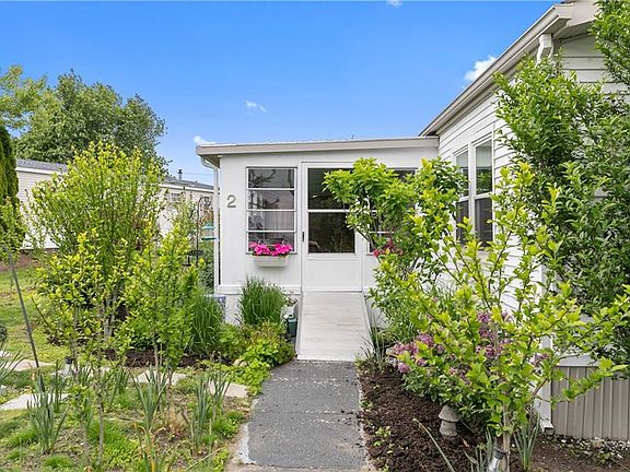 Located on the most spacious lot in the park, this property lives more like a single-family home but with the efficiency and affordability of a manufactured home. Legal two bedroom but an addition affords this home a third bedroom with ensuite bath. Many new upgrades and improvements throughout, including eight new windows in 2024, as well as 1400 sf of new subfloor, rubber roofs, hot water heater and pellet stove (complete list of upgrades available upon request). All systems have been diligently maintained. Peaceful and private, the home includes a shed and is bordered by expansive fields perfect for walking your dog. There is a large sunroom/mudroom, and extensive gardens including lilacs, peonies and apple and cherry trees. Short walk to the beach and a public boat ramp, a bus stop, brewery, and easy access to route 24. Pets welcome. Water, trash/recycling pickup and plowing are included in your monthly fee.