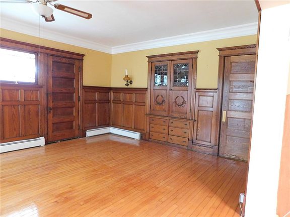 a beautiful park right outside your door. Enter into the dining room with a fireplace and really nice period woodwork on the walls, just the right setting for all those holiday gatherings. The foyer boasts an open staircase and a built-in bench seat right next to the other fireplace that is in full view of the large living room and front entrance way. The walk-in pantry is a cook's dream come true, plenty of storage floor to ceiling with drawers and cupboards. First floor laundry, a cozy kitchen with plenty of natural light and room off the kitchen for a possible home office with its own entry. Also there could be an in-law as well