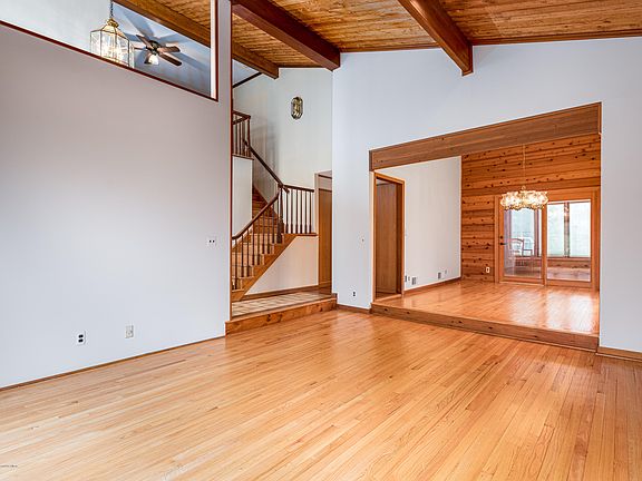 - RoomLivingRoomFeatures: Sunken, Bay/Bow Window, Floor - Wood, TRY/VLT/CATH, Ceilings - Beamed