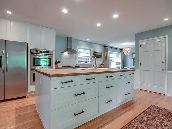 Welcome to 2 Nuffield Road! Located in the desirable neighborhood of Sandhurst this well maintained home has much to offer. Recent renovations opened up the original ranch floor plan without sacrificing the separate, formal spaces. Highlighting the improvements is a stunning, chef's kitchen accentuated by custom butcher block counter tops, upgraded stainless steel appliances, double wall ovens, subway tile backsplash and a huge center island complete with a double sided farm sink. The bedrooms are all generous in size and have plenty of closet space. Hardwood floors run throughout the living areas and bedrooms, and there is an oversized two car garage which provides an abundance of storage. The fully fenced back yard has a large, custom gazebo with electric, water and hard piped