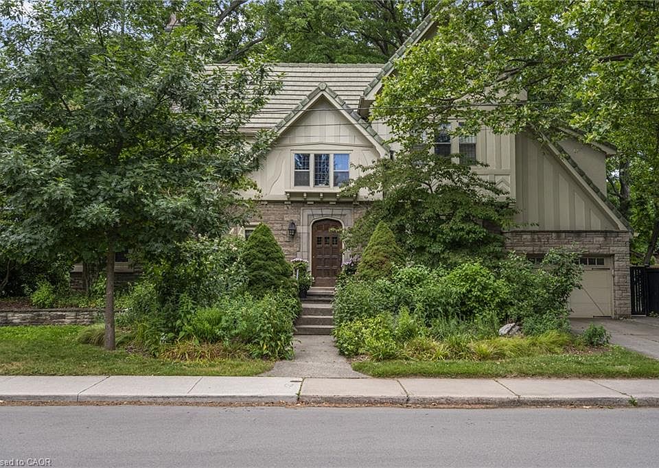 Set on a quiet street in walkable, sought-after Westdale North, this exquisite Tudor Revival residence blends timeless architecture with modern amenities. A striking façade of angel stone and stucco is accented by original leaded glass windows, setting the tone for the character and quality found within. Inside, French doors open to elegant living and family rooms, where hardwood floors, wainscoting, and period-style lighting create a warm, inviting atmosphere. The chef-inspired kitchen features inset off-white cabinetry, soapstone counters, a Sub-Zero fridge, and clever storage solutions. Upstairs, the wide original staircase leads to two upper levels offering five generously sized bedrooms and a versatile den/laundry room. Three bedrooms feature built-in desks, while two enjoy private ensuites with natural stone, custom vanities, and in-floor heating—also found in the dining room for extra comfort. Outdoors, the award-winning native garden and fully fenced backyard offer beauty and functionality with Credit Valley stone retaining walls, new concrete pavers, in-ground irrigation, and a gas BBQ hookup. A single-car garage with automatic opener, cedar-lined storage, and a premium concrete tile roof round out the thoughtful features. This is your rare chance to own a true architectural gem in one of Hamilton’s most beloved neighbourhoods.