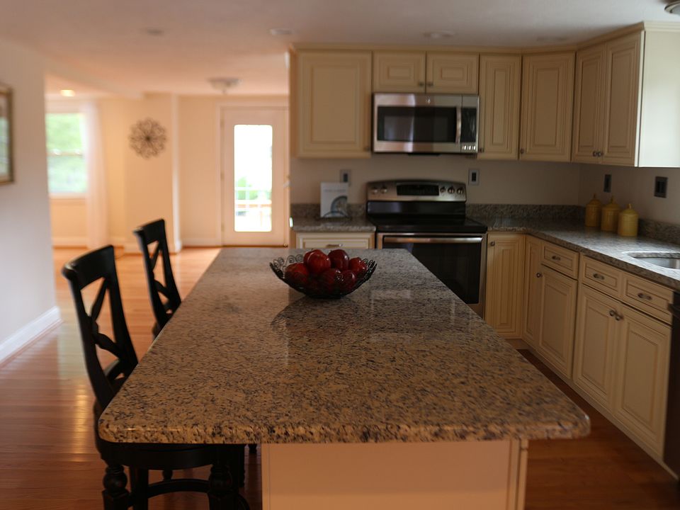 Totally updated Colonial with open living area-perfect for today's lifestyle! Beautiful gleaming hardwood floors, plenty of windows for natural light, plus several recessed lights. Stunning Center-Island Kitchen with high end granite counter-tops, cabinetry is soft cream finish with soft close drawers and stainless steel appliances. Huge dining room with atrium doors to new oversize deck. Luxurious full bath with granite, tiled tub/shower, tile floors and laundry hook-ups. Huge master bedroom with vaulted ceiling and very large walk-in-closet. Large bedrooms with spacious closets and a fabulous full bath with double vanity and granite counter tops, jetted tub with tile walls and floor plus separate shower. Finished family room in the basement with soapstone wood-stove-very cozy! Awesome yard, professionally landscaped and completely fenced in-complete with the white picket fence, relax by the fire-pit area as you enjoy the outdoors! Vinyl siding with newer windows. Public water and sewer-close to highways and shopping. THIS IS A MUST SEE!!!