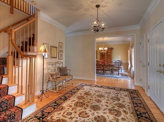Nestled in a coveted location in a highly desired community, this 5 bedroom semi-custom colonial has an open floor plan with many special architectural features.The first floor with hardwood floors boasts a spacious kitchen with a large center island and new stainless-steel appliances. The great room invites you with a wood burning fireplace and natural bright light throughout.A formal separate living room and dining room provide ample space for entertaining, as well as an office for work or to be used as a guest-room. Sliding doors lead way to a fenced, park-like backyard with a private entertaining paver patio including a fire pit. Having two staircases for enhanced functionality, the second floor has a large master suite with a tray ceiling and a master bath with an oversized jacuzzi.