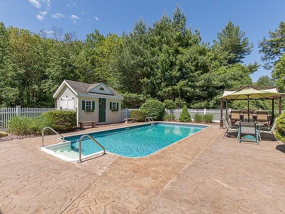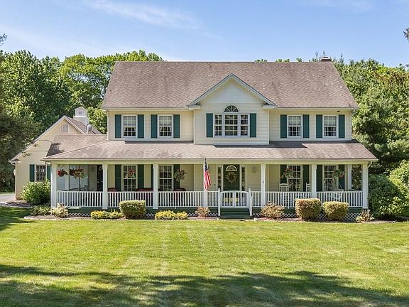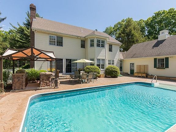 "Picture perfect" is what you'll find at this charming Colonial-style home. With an inviting wrap-around front porch, perfect for sitting out on a lazy summer afternoon, this home has great curb-appeal with its majestic yard and professional landscaping. Although currently a 3 bedroom & 2.1 bath home, with more than 3500 sq ft of finished space, a 4th bedroom is possible by converting an upstairs room (with no change to the existing septic system). The kitchen is very stylish and spacious with an open floor plan that features a center island w seating, a breakfast nook, and desk area. Lots of counter space and high-end appliances make entertaining easy. The kitchen opens to an adjoining family room (w/ a fireplace) that accesses a resort-like fenced pool and patio with its own cooking area. The expansive first floor also features a spectacular front entrance foyer, dining room, living room, and easy access off the kitchen to a laundry room, mud room and 3 car garage. The second floor has a master bedroom suite with a walk-in closet, dressing area and a large 2-sink bathroom with a jacuzzi tub and separate shower-tower. There are also two other 2nd floor BRs and a 2nd full bathroom. Lastly, the basement has 542 sq ft of finished space w a commercial grade kitchen which the Sellers are willing to convert back to a playroom. Located on the Woodbridge / Orange town line, this home has great convenience to RT 15, RT 34 and is a perfect commuting spot for YALE & Fairfield County.