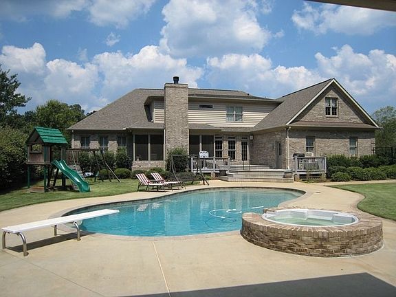 You must see this lovely home with 3 bedrooms and 2.5 baths on the main level and 2 bedrooms and 1 bath on the upper level with a kitchen, which makes a great mother in law quarters. Features include granite countertops, upscale kitchen, oversized living area with fireplace, Butlers pantry, central vacuum, security system Lutron lighting system and a large master suite with jetted tub and walk-in shower that has multiple shower heads and body sprays. Upstairs there is a bonus or craft room, media room and a full walk-out attic. Outside you will find a screened in porch with wood burning fireplace, a beautiful salt water gunite pool, 6 person spa will spill over waterfall, pool house with full bath and fenced in yard. Great home for entertaining! A one year home warranty is included.