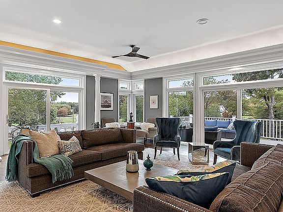 Situated on a stunning pastoral horse property, this grand home shines w/high-end finishes and craftsmanship that are sure to please todays most discriminating buyer.Gorgeous chefs kitchen w/custom cabinets, large pantry, gas fireplace, window seat,and top of the line appliances leads to a newly remodeled sunroom and a dining rm w/cathedral ceiling and gorgeous views.Formal living rm w/majestic columns and marble fireplace leads to a 30 deck and a Juliet balcony, both overlooking the lush pastureland.Fabulous master wing features private library w/rich wood paneling and built-ins;an oversized master bedroom with French doors to private terrace;and amazing master bath w/steam shower, jacuzzi tub,& a green onyx double vanity.Custom stairways bring you to solarium, 3 bedrooms, family rm w/fireplace, wine cellar,& workout area.Home features new triple pane windows, ext. doors, garage doors, ceiling fans, electrical, heating systems;mahogany/ash/birch hdwds,barn and exotic granites.
