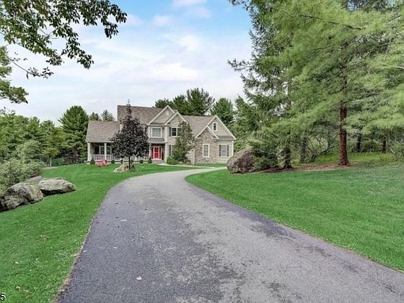Sophisticated Custom Residence in Tewksbury Custom-built in 2016, this classic home is surrounded by three acres of landscaped privacy in one of Tewksbury's most desirable neighborhoods. Centrally located just minutes from I-78 and New York trains, the pastoral cul de sac setting offers a charming covered front porch and expansive fenced backyard. Inside, the flexible floor plan provides remote work and school options within its sun-splashed 3,680 square-foot layout. A long, curving driveway leads to the stone-accented residence highlighted by established landscaping, mature trees and open green lawns. Inside, fabulous design features include hardwood floors, a gas fireplace, high and volume ceilings, dimensional wainscoting, raised woodwork, crown moldings, neutral paint colors and recessed lights. Introduced by a soaring foyer, there are open views into some of the primary gathering areas. Graceful living and dining rooms are ideal for special occasions and everyday life. Just off the living room is an enormous vaulted ceiling study featuring French doors to the covered porch. Tucked off the foyer is a home office and powder room, the perfect virtual work arrangement. A chef's center island kitchen is appointed with white cabinetry, granite countertops, stainless steel appliances and a walk-in pantry. The kitchen's sunny dining area gives way to the two-story family room with a gas fireplace and rear staircase. Completing the main level is a laundry room and access to the attached, oversized three-car garage. Upstairs, a lavish master suite contains a tray ceiling bedroom, sitting area and two roomy walk-in closets. A spa-inspired master bath has a soaking tub, separate shower, dual sink vanity and private commode. The guest suite adjoining a private bath and two additional bedrooms sharing a full bath in the hallway are also on the second story. A full, dry insulated basement offers over 1,800 square-feet of future living space with 12-foot ceilings and drywall in place. Constructed by an award-winning builder on a low-traffic street just outside the quaint village of Cokesbury, this impressive custom home shows pride of ownership throughout.